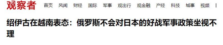 值得一提的是,在越南访问的俄安全会议秘书绍伊古,不忘点名日本,之前日本与中方因台湾问题交恶后,俄方的表态还算克制,如今日本与北约勾搭上了,一下子让俄方怒火中烧。
